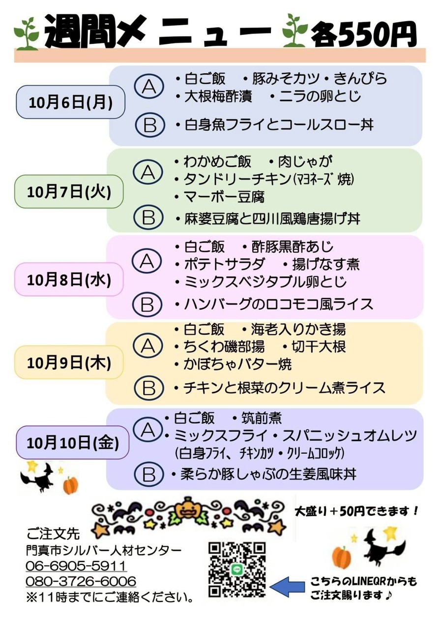 06日 10月 2025 10/6からの手作りお弁当メニュー 10/6からの手作りお弁当1週間メニュー\(^o^)/ ぜひお電話、LINEより当日11時までにご注文ください!! 店頭ではおかずのみの販売もございます(数に限りがあります)。お楽しみに♪ ※内容を変更する場合がございます。 tagPlaceholderカテゴリ: