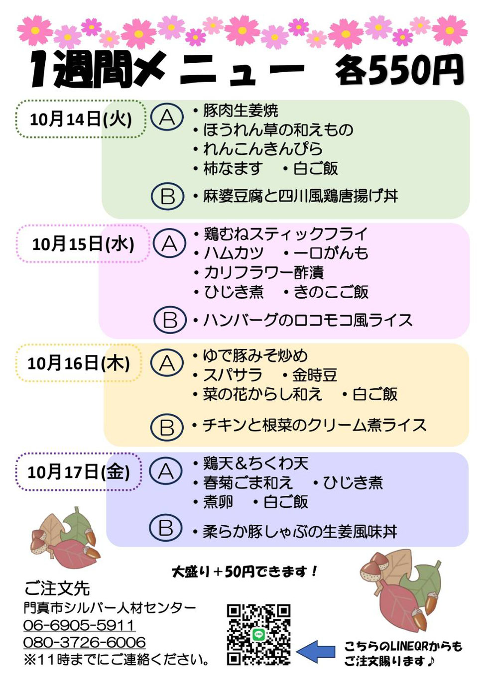 13日 10月 2025 10/14からの手作りお弁当メニュー 10/14からの手作りお弁当1週間メニュー\(^o^)/ ぜひお電話、LINEより当日11時までにご注文ください!! 店頭ではおかずのみの販売もございます(数に限りがあります)。お楽しみに♪ ※内容を変更する場合がございます。 tagPlaceholderカテゴリ: コメントをお書きください コメント: 0
