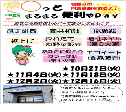 10/21(火)【生きがい創造館りんどう】◯っとまるまる便利やDayが開催