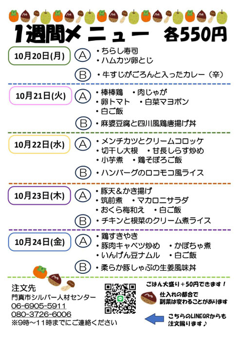 10/20からのお弁当メニュー&10/21は〇っとまるまる便利やday